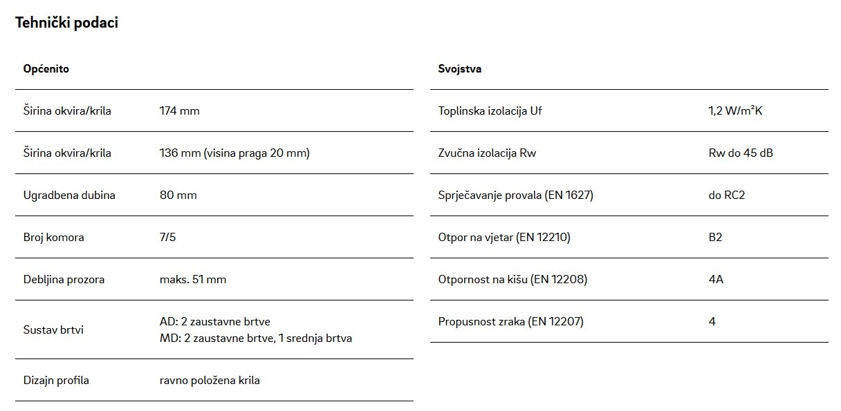 Sustav profila v u ugradbenoj dubini 80 mm i s Uf-vrijednosti do = 0,82 W/m²k